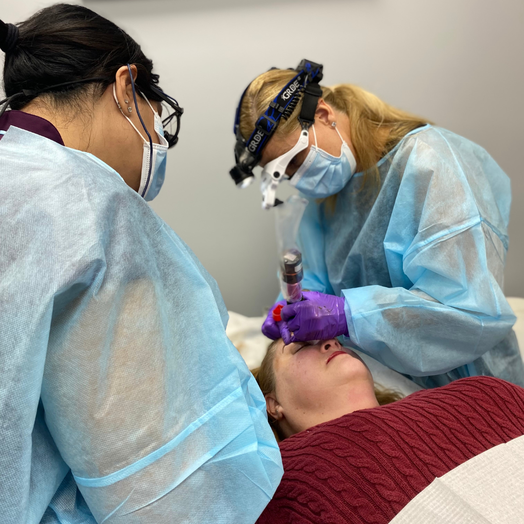 Day 4-6 - Once you have completed your 3 days online training you will come in for hands-on training. During your hands on you will perform 6 procedures, 2 brows, 2 eyeliner and 2 lips. We provide the models and supplies needed during your training. We have a 2 to 1 instructor/student ratio. Our instructors will be there to guide you through each procedure. We will teach you six (8) PMU techniques: Traditional Brow, Powder Brow, Hairstrokes, Traditional Eyeliner, Lash Enhancement, Traditional Lip Line & Shading and Lip Blushing. You will learn how to consult with clients, prepare and review your client intake forms, color theory, needle selection, cross contamination - everything you need to start your career in permanent makeup.
